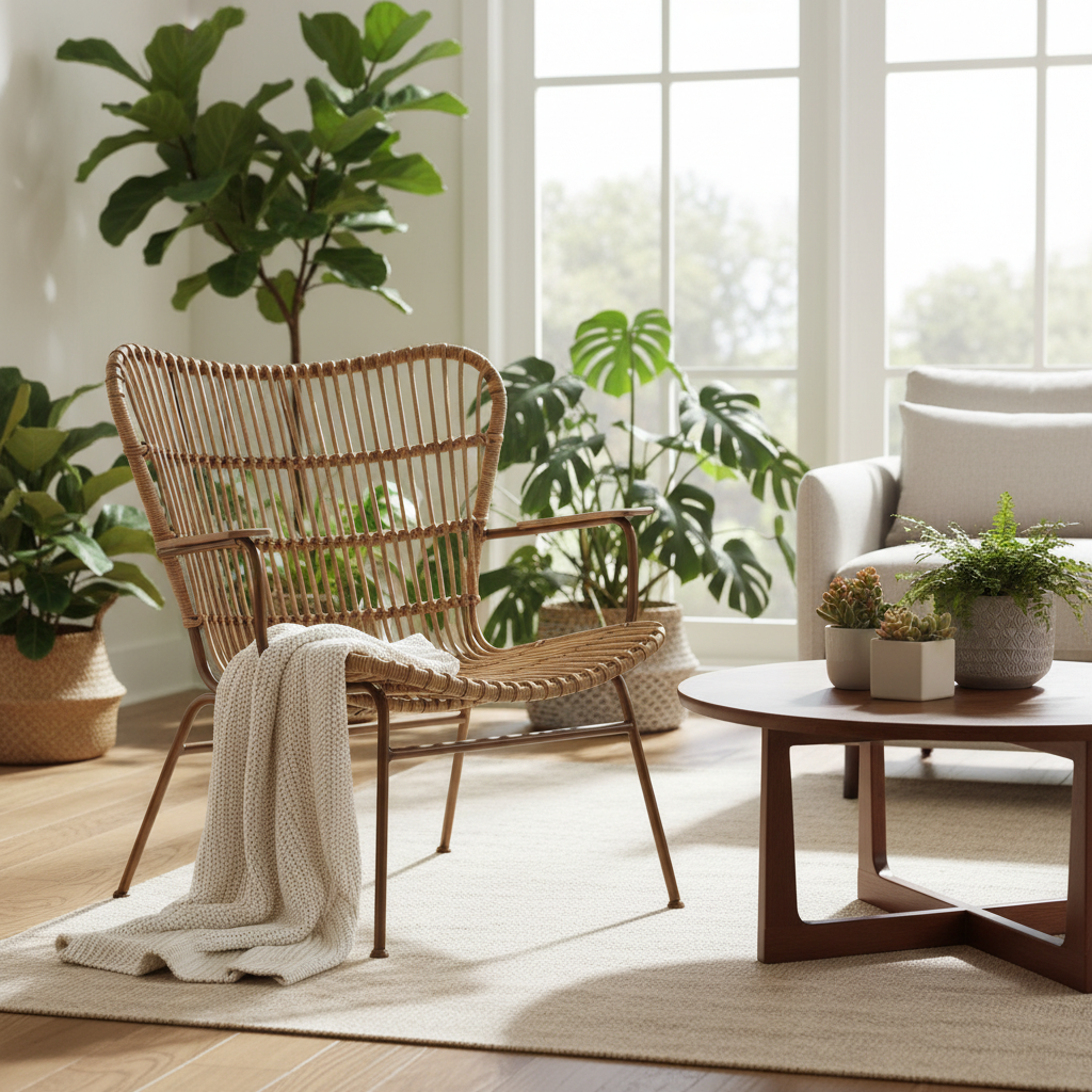 Kursi rotan bukan hanya fungsional, tetapi juga berperan sebagai elemen dekorasi. Biophilic design yang artistik mampu menambah keanggunan alami pada ruangan. Apapun tema rumah Anda—baik industrial, Skandinavia, atau tropis—kursi rotan dengan desain minimalis dapat menjadi aksen yang memperkaya tampilan interior.